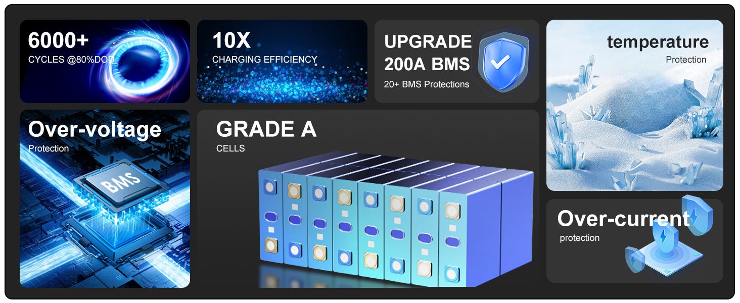 | Cycle Life | ≥ 6000 cycles (80% DOD, 0.2C/0.5C at 25℃) | ≥ 6000 cycles (80% DOD, 0.2C/0.5C at 25℃) | ≥ 6000 cycles (80% DOD, 0.2C/0.5C at 25℃) |